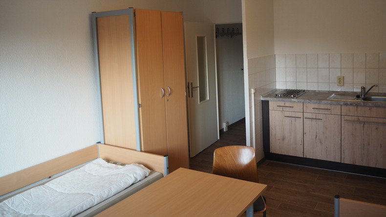 So stehen in der Juri-Gagarin-Str. heute 180 Plätze, vornehmlich in Doppelzimmern, bereit. Die Bewohner:innen verpflegen sich selbst. Hierfür stehen Gemeinschaftsküchen und Kochnischen sowie Kühlschränke in den Zimmern zur Verfügung.